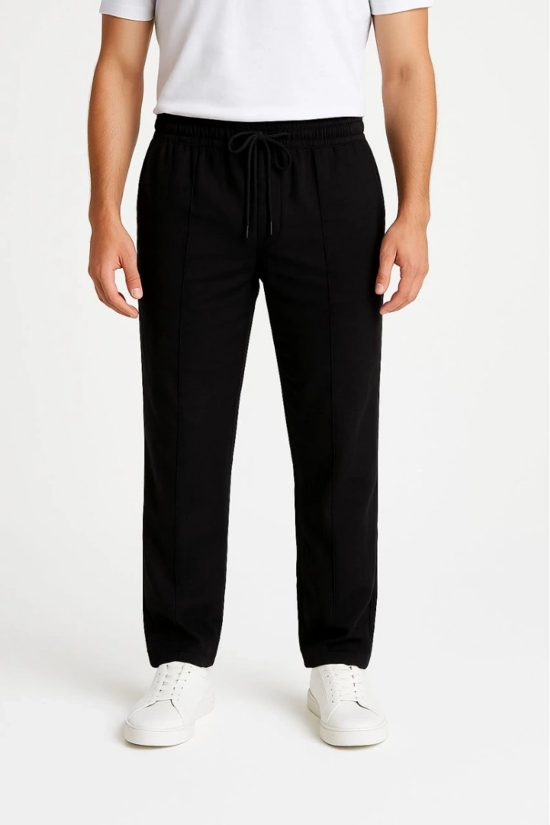 Erkek Keten Pantolon – Cepli, Beli Lastikli ve Bağcıklı, Nefes Alan Rahat Kalıp, Yazlık ve Baharlık Günlük Giyim, Şık & Konforlu Boru Paça Model - Siyah