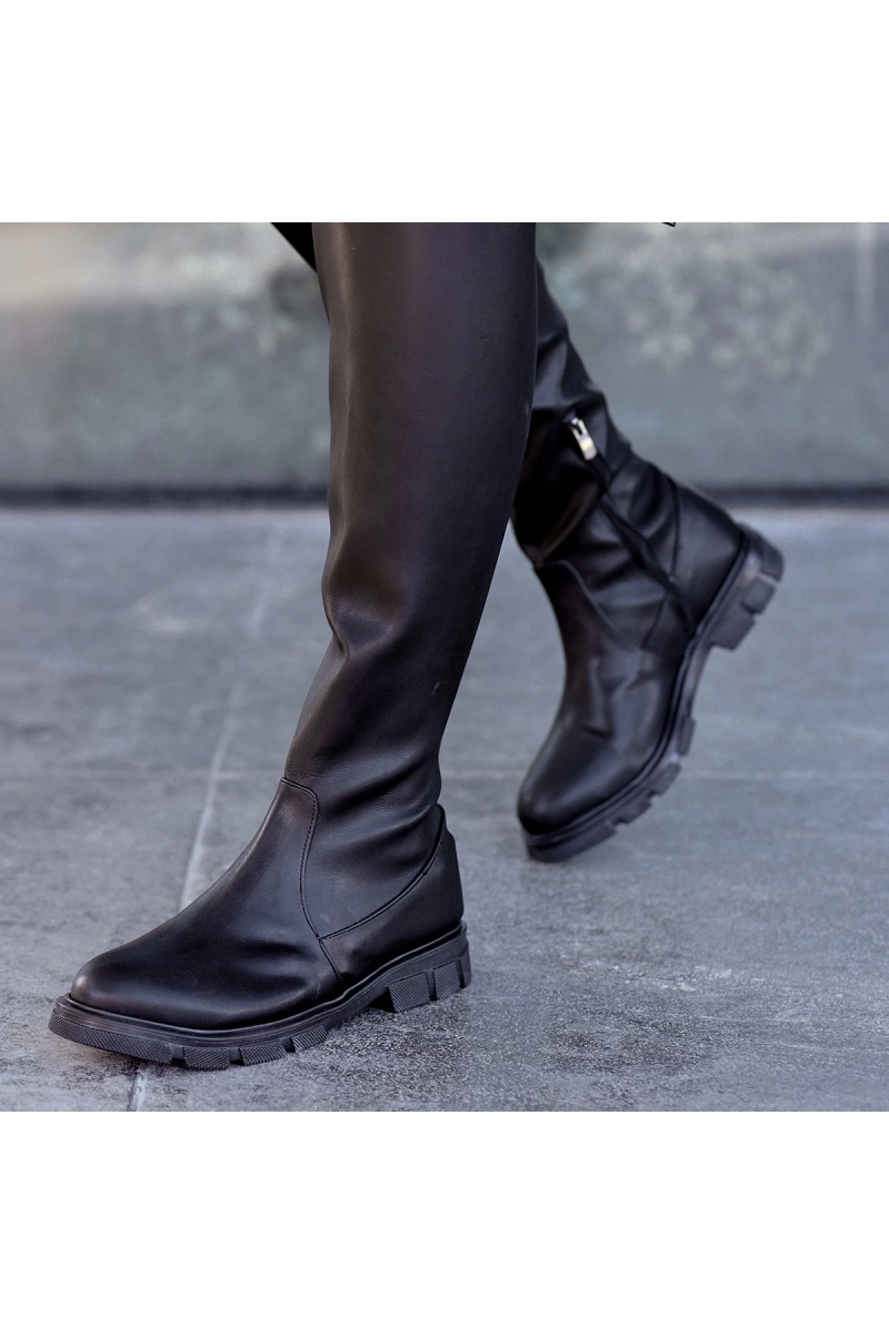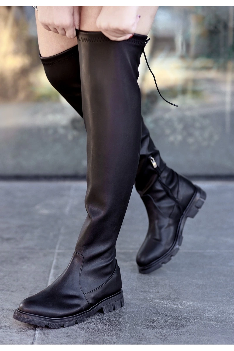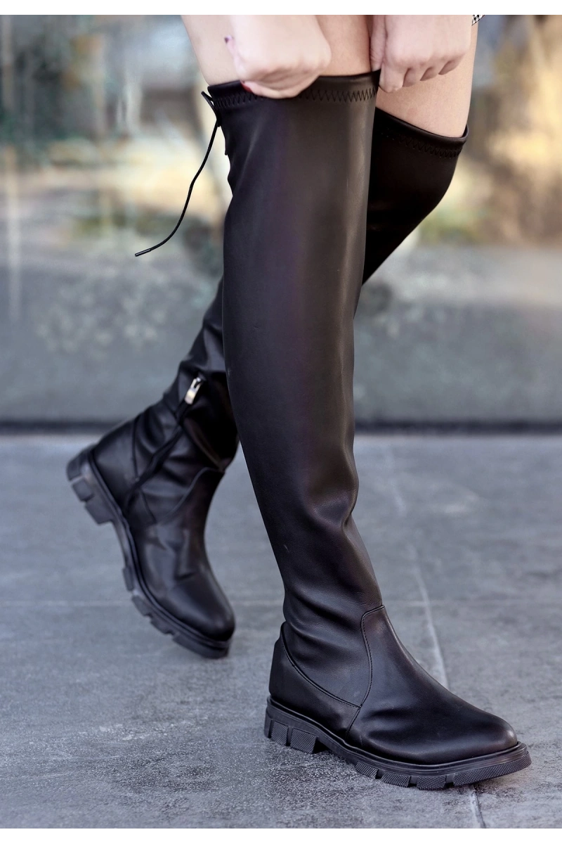 Detay : Topuklu Diz Üstü Yandan Fermuarlı Çizme