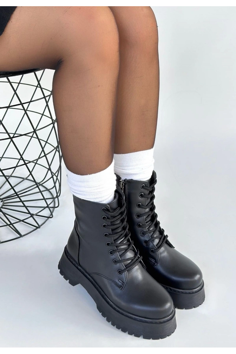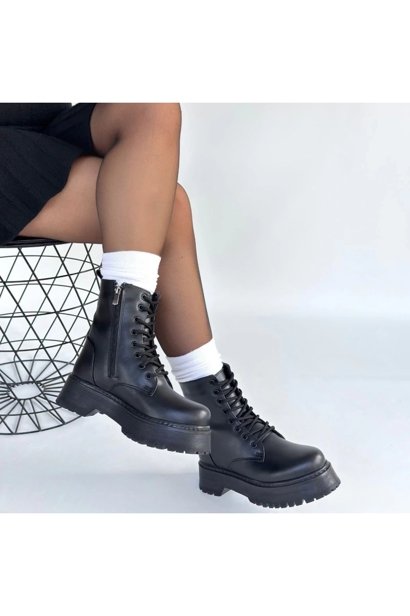 Jonni Siyah Cilt Bağcıklı Bot