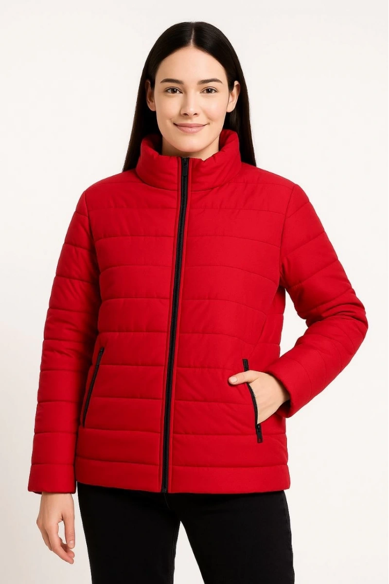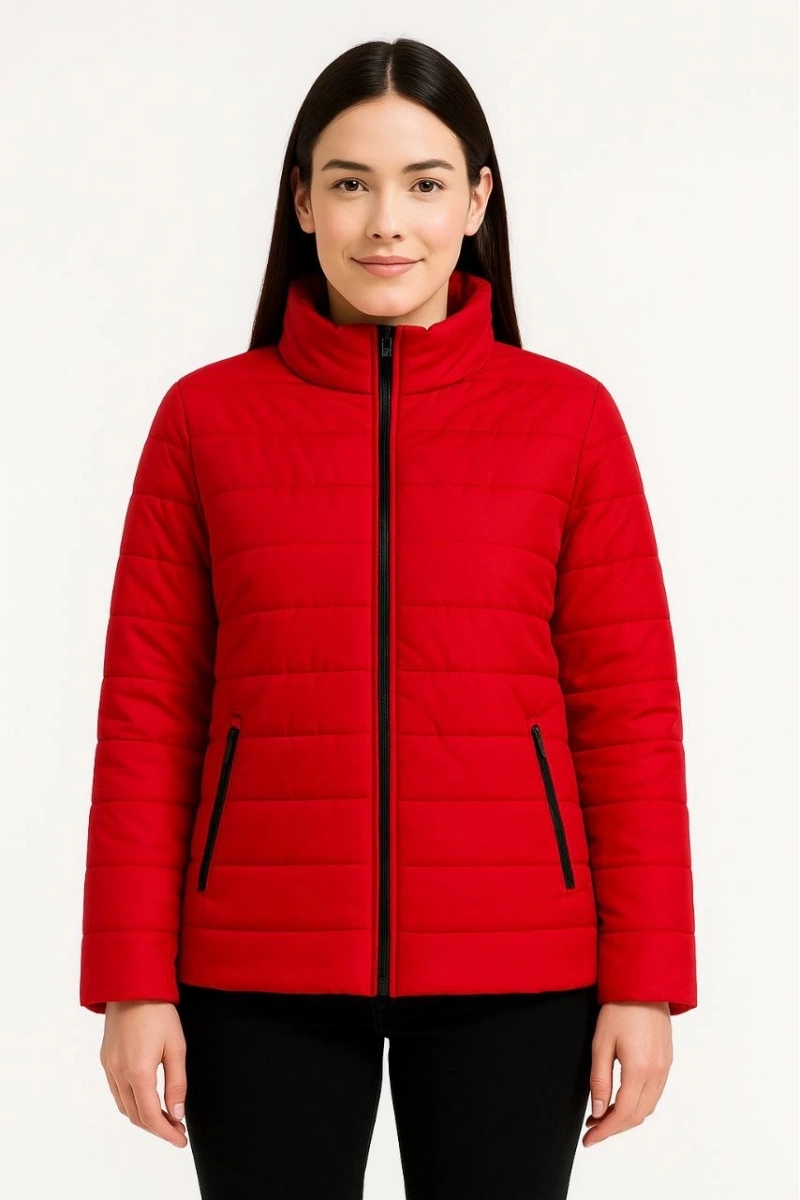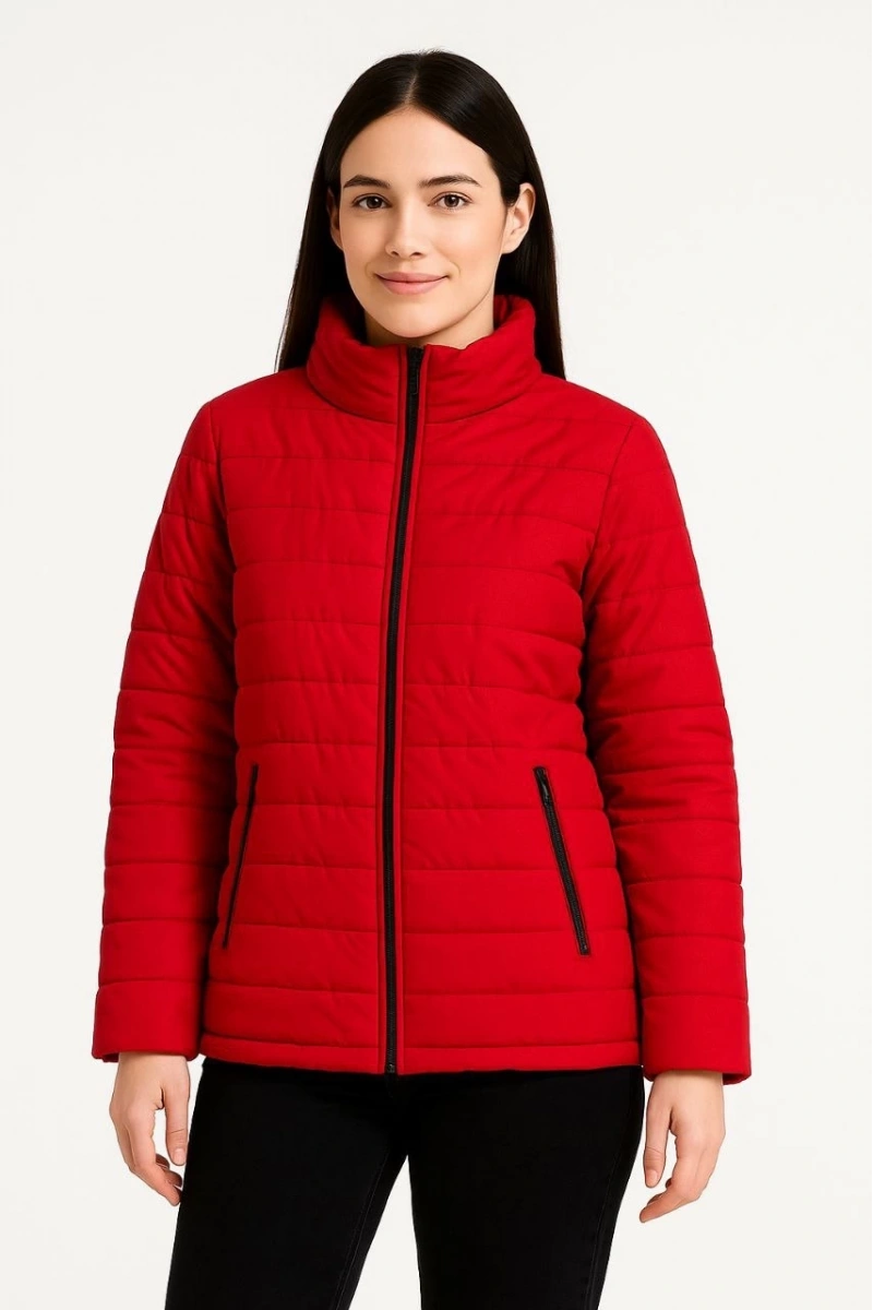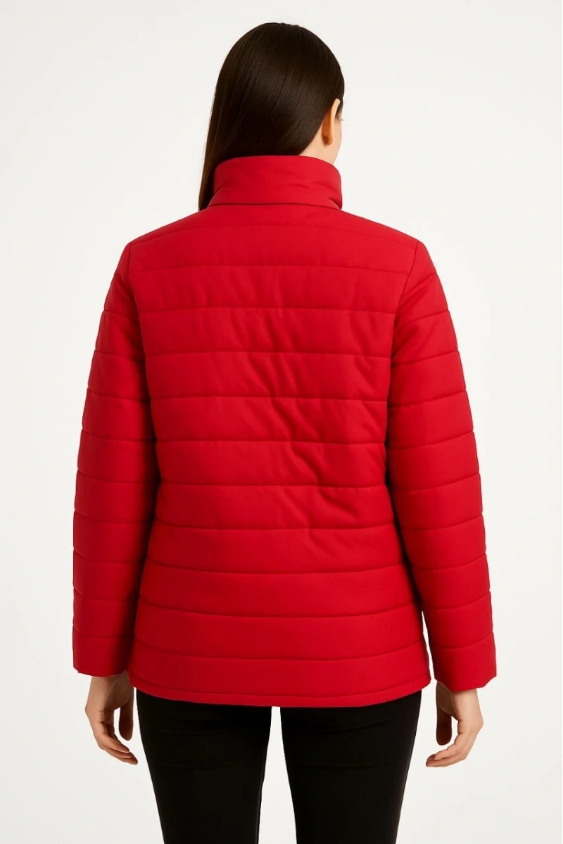 Kadın Bomber Mont Ceket – Su İtici Kumaş, Kapitone Astarlı, Fermuarlı, Kışlık - Kırmızı