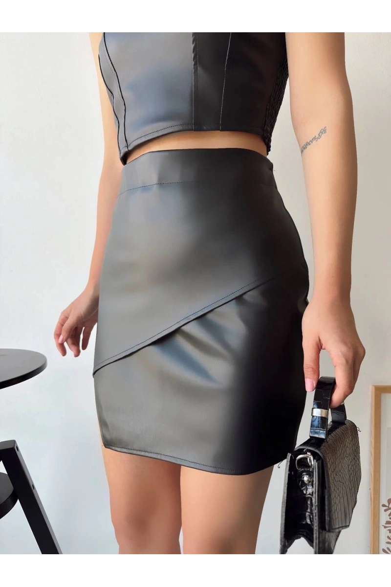 Şıklığı ve tarzı bir arada sunan s240106 kapaklı asimetrik model deri eteğimiz, gardırobunuzun vazgeçilmezi olmaya aday!