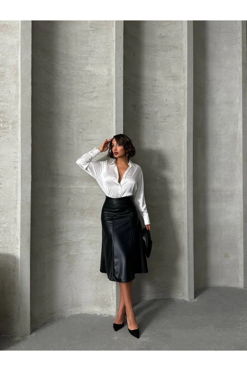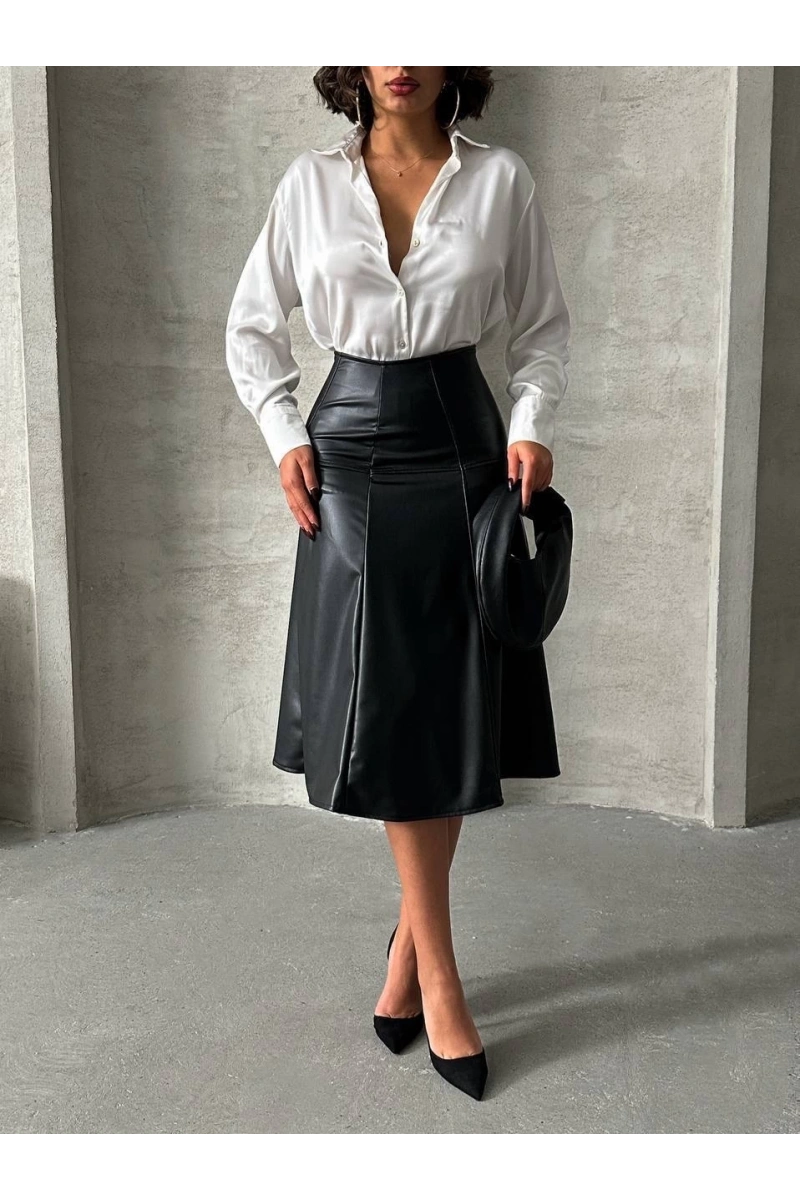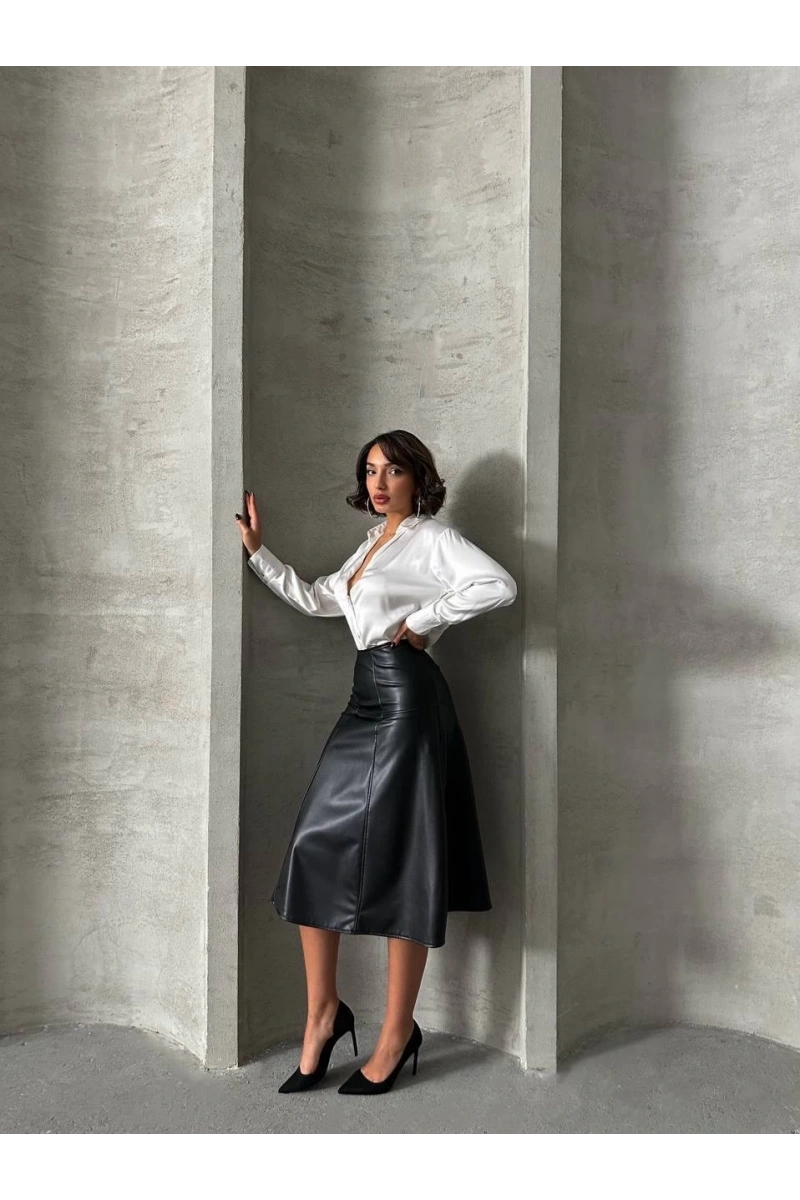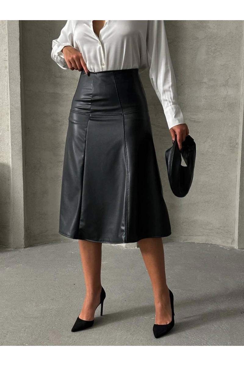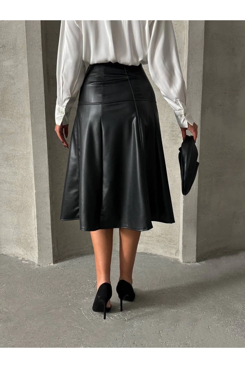 Şıklığı ön planda tutan Komple parçalı deri eteği, gece davetlerinden günlük şıklığa kadar birçok farklı kombinle kullanabilirsiniz.
