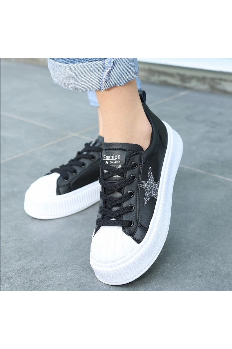 Piata Siyah Cilt Beyaz Tabanlı Bağcıklı Spor Ayakkabı