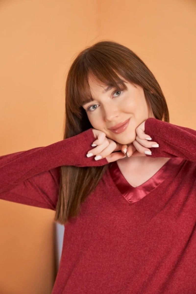 PJS 28091 Kadın V Yaka Uzun Kol Pijama Takımı