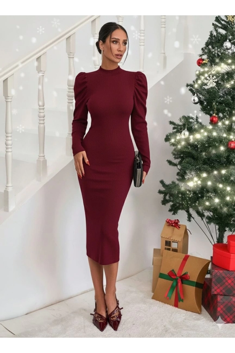 Prenses kol kaşkorse elbise bordo a3691, feminen ve zarif bir görünüm sunar.