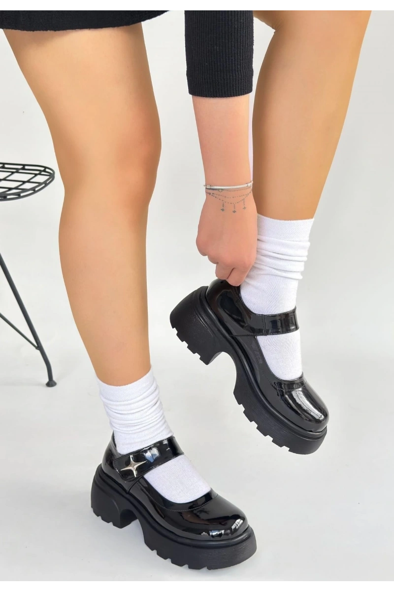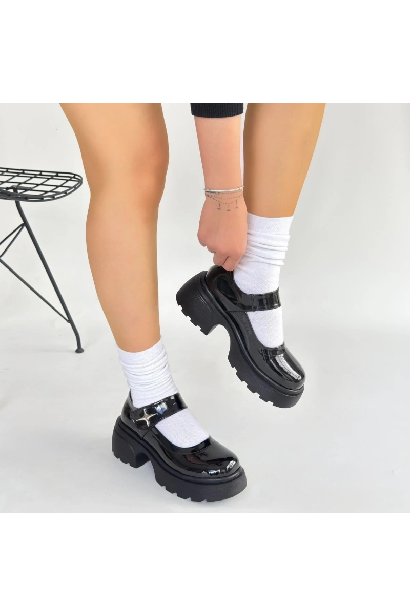 Siyat Siyah Rugan Dolgu Topuk Oxford Ayakkabı