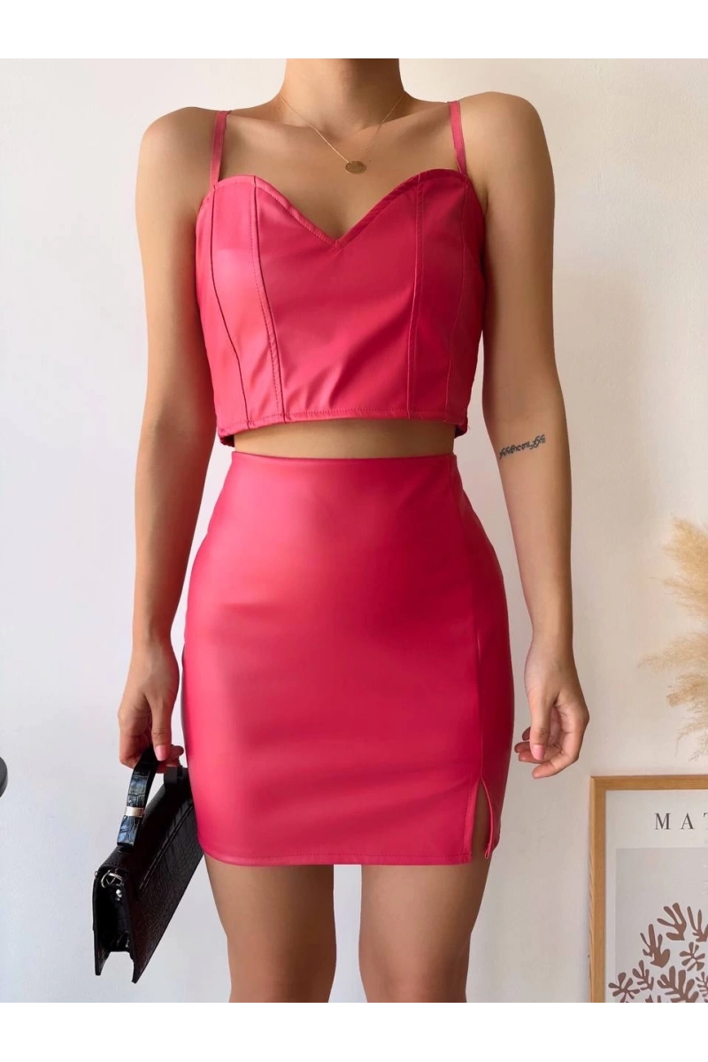 Şıklığı ve zarafeti bir arada sunan Tek Yırtmaçlı Arkadan Fermuarlı Deri Etek Fuşya S24475, gardırobunuzun vazgeçilmez parçalarından biri olmaya aday!