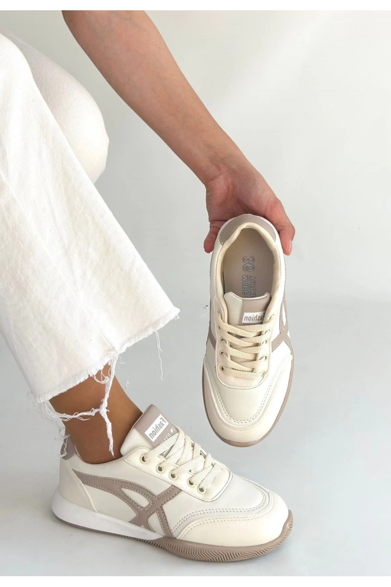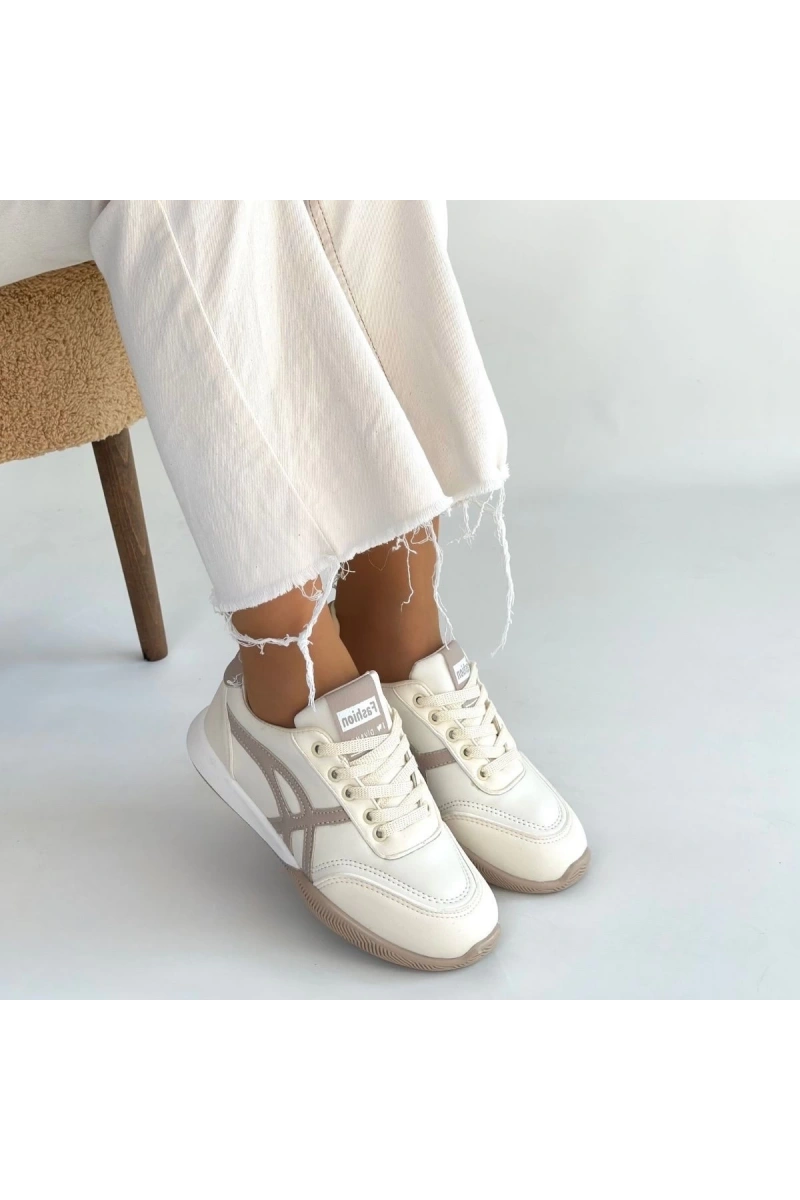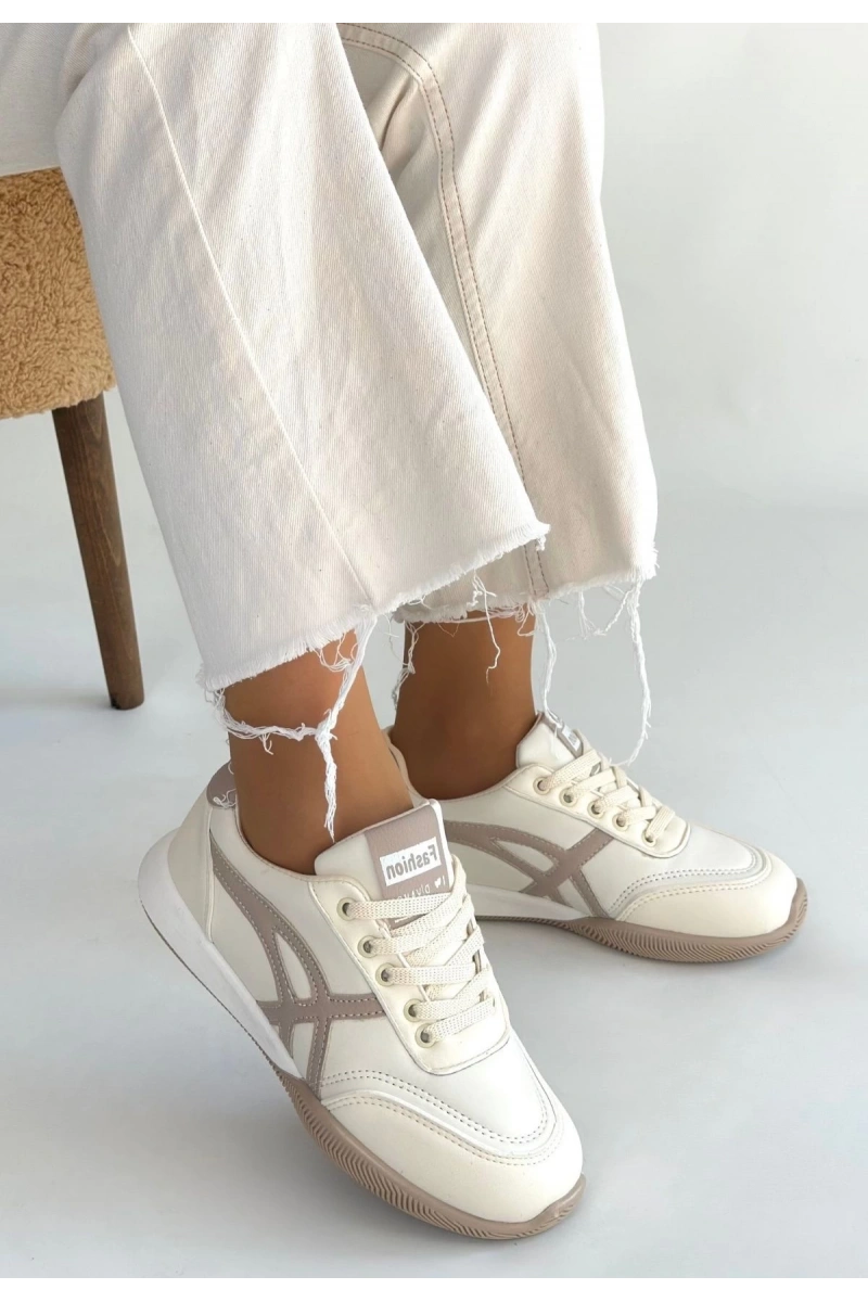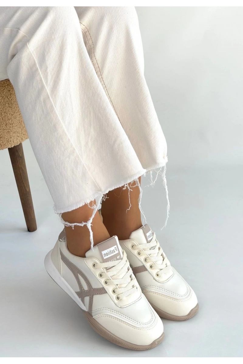 Zlay Bej Cilt Vizon Detaylı Bağcıklı Spor Ayakkabı